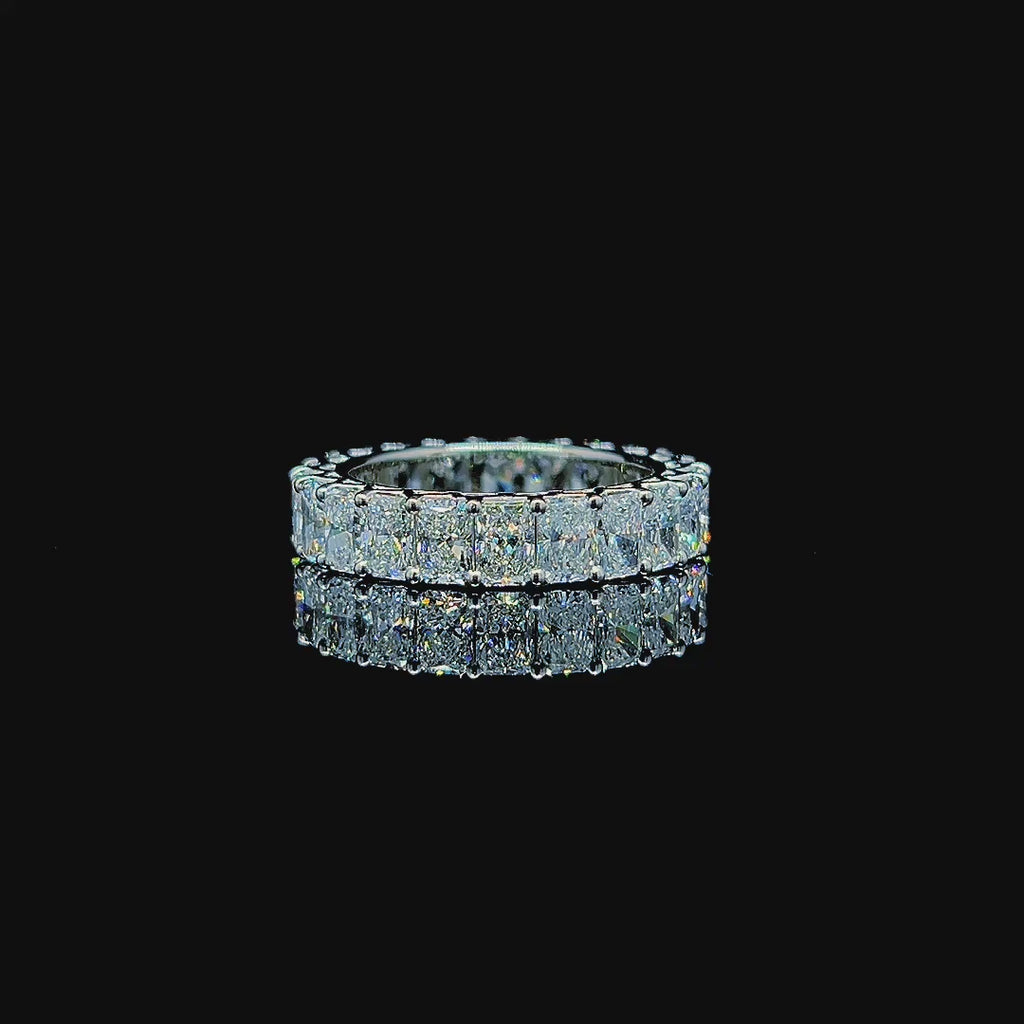 This radiant cut diamond eternity ring is designed to take their breath away. Each stone is hand-selected for brilliance and set in polished white gold, wrapping the finger in unbroken sparkle. Whether you're celebrating a milestone or simply indulging in timeless elegance, this ring speaks volumes of love, commitment, and refinement. A piece to be treasured forever.