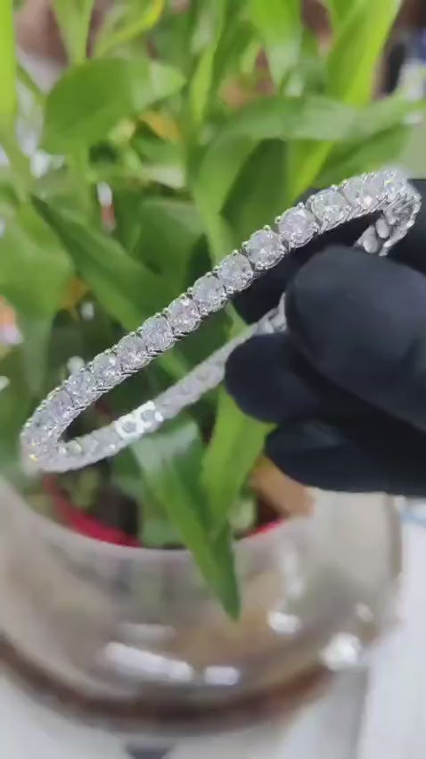 This exquisite tennis bangle is crafted with dazzling round brilliant diamonds, each expertly set to create a seamless circle of brilliance. A luxurious must-have for elegant occasions, handcrafted in white gold for a timeless finish.